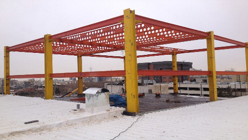 Due to the operation of section 14 and the beginning of the implementation of section 15 and for the ease of access to these 2 sections, the box of elevators for people and beds on the lower sections was moved to higher floors by implementing a metal frame on the existing structure. Also, after the implementation of the metal framework, the stairwell box was also continued up to the roof of the additional structure, and the lobby between sections 14 and 15 was fully implemented.